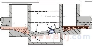圖7備注:1.入口 2.溢流管 3. 入口柵 4.清洗孔 5.流量計(jì) 6.短管 7.出口 8.排放閥