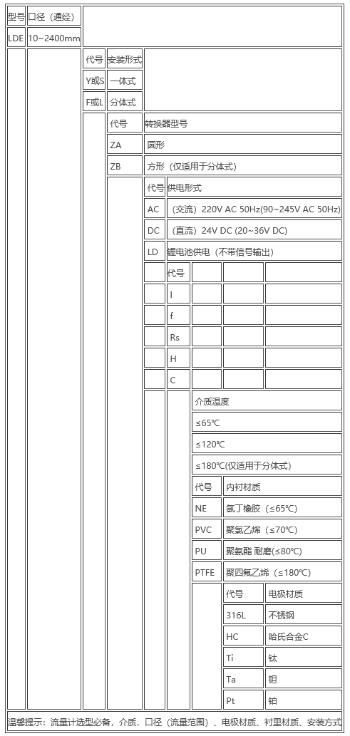 電磁流量計型號解讀